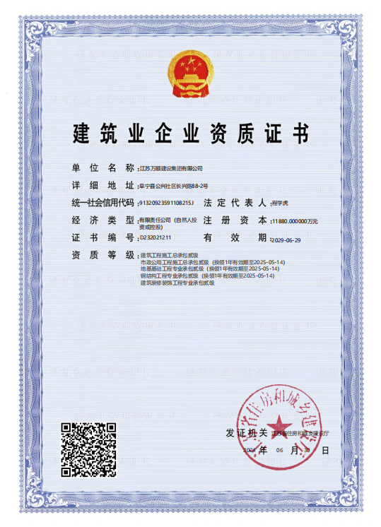 • 萬順集團(tuán)晉升為江蘇省二級資質(zhì)建筑單位2015-02-28